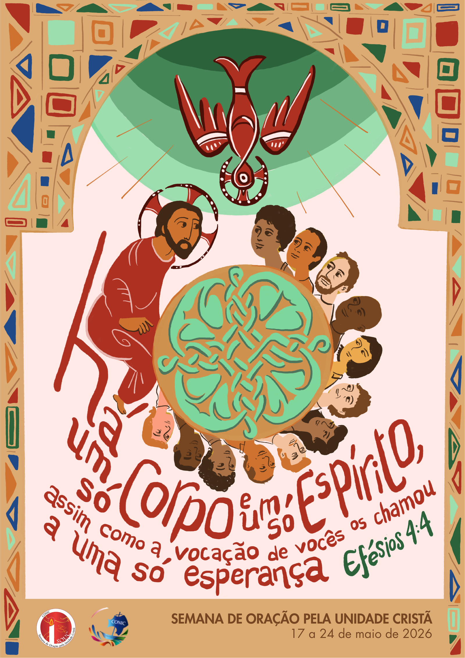 É com alegria que anunciamos o resultado do Concurso que escolheu a arte oficial da Semana de Oração pela Unidade Cristã (SOUC), edição 2026. O vencedor foi Felipe Sérgio Koller, cuja proposta foi selecionada para ilustrar o cartaz e as demais peças gráficas da campanha que será celebrada entre os dias 17 e 24 de maio de 2026, na Semana de Pentecostes.