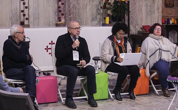 Na última mesa, a reflexão teológica esteve no centro no debate e refletiu os elementos levantados anteriormente. Yuri Orozco (pelo CONIC) apresentou uma síntese das reflexões anteriores e enfatizou a necessidade de buscar novas formas de teologia que reflitam o ser humano como sujeito coletivo.