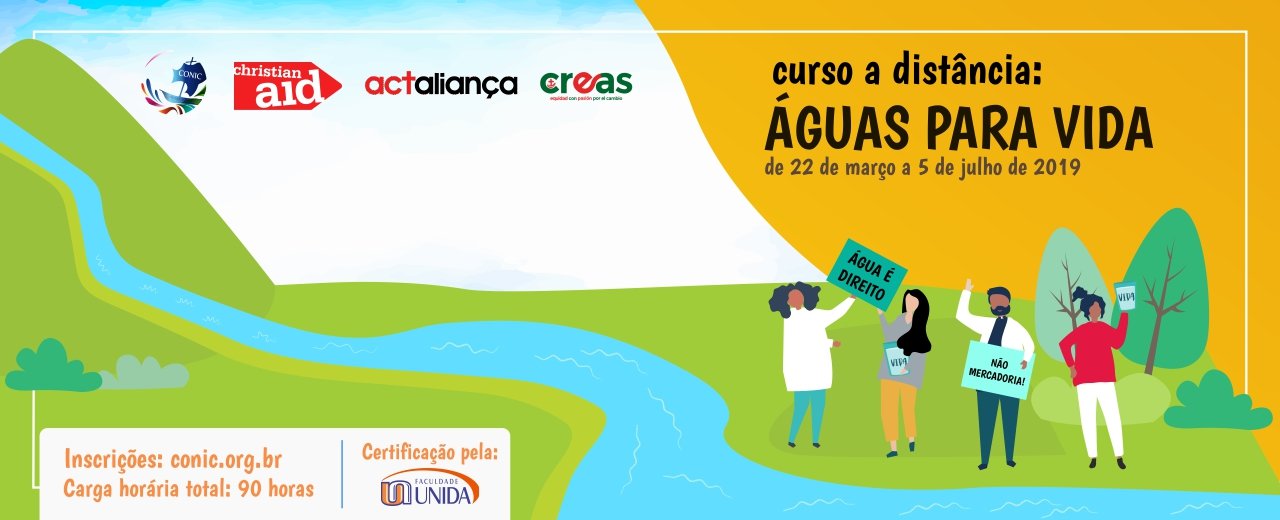 Tem início nesta sexta-feira, 22 de março, Dia Mundial da Água, o curso de formação online para comunidades de fé sediadas no Brasil, Águas para Vida. CONIC, ACT Alliance, Christian Aid e CREAS são os responsáveis pela iniciativa, que vem como resposta às articulações ecumênicas e inter-religiosas do Fórum Alternativo Mundial da Água, em 2018, quando se percebeu a necessidade de uma formação espiritual, teológica, técnica e política a respeito do tema.