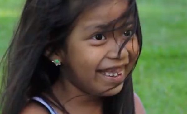No vídeo E tem coisas parecidas? a menina Nayane Grakré Domingos Fidélis, que aparece na foto, de 7 anos, do povo Kaingang, conta um pouco da sua vida, o que gosta de fazer, e é perguntada no que as pessoas não indígenas são diferentes? “Elas não dançam kaingang, não falam...