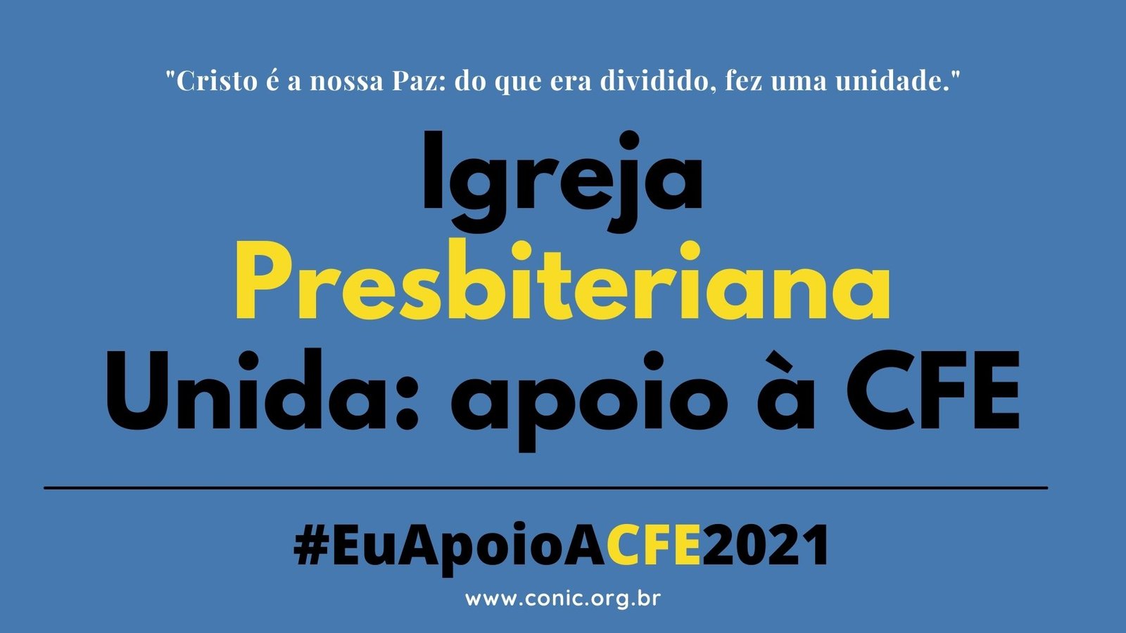 O Conselho Coordenador da Igreja Presbiteriana Unida do Brasil (CC-IPU) reitera suas orações e seu apoio à V Campanha da Fraternidade Ecumênica (CFE) e ao Conselho Nacional de Igrejas Cristãs (CONIC) e manifesta sua solidariedade com os representantes das instituições que nos últimos dias sofreram ataques caluniadores e infundados.