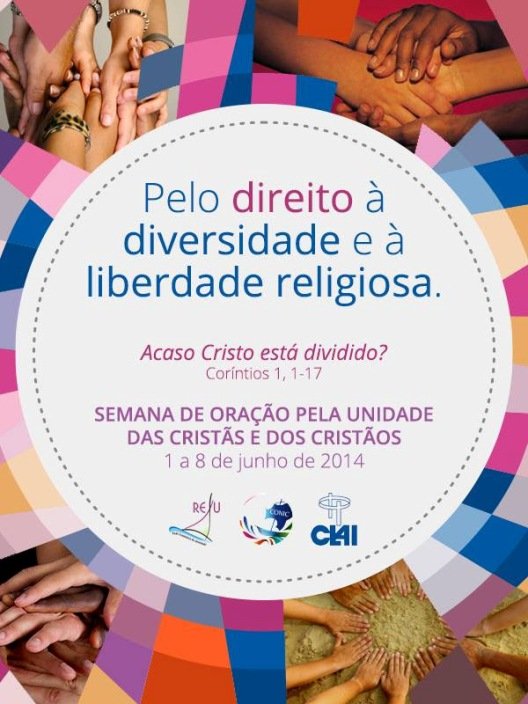 Por ocasião da Semana de Oração Pela Unidade das Cristãs e dos Cristãos (SOUC) - que abordará a temática presente na carta de I Cor 13: “Acaso Cristo está dividido?” - a REJU levantará o debate sobre o direito à diversidade e liberdade religiosa, numa reafirmação do compromisso com o enfrentamento à intolerância religiosa e garantia do Estado Laico, um dos eixos de atuação da rede para os anos de 2013-2014.